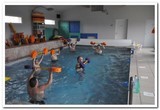 - Savoir nager n'est pas indispensable (profondeur bassin 1,3m), la tête n'est pas sous l'eau.